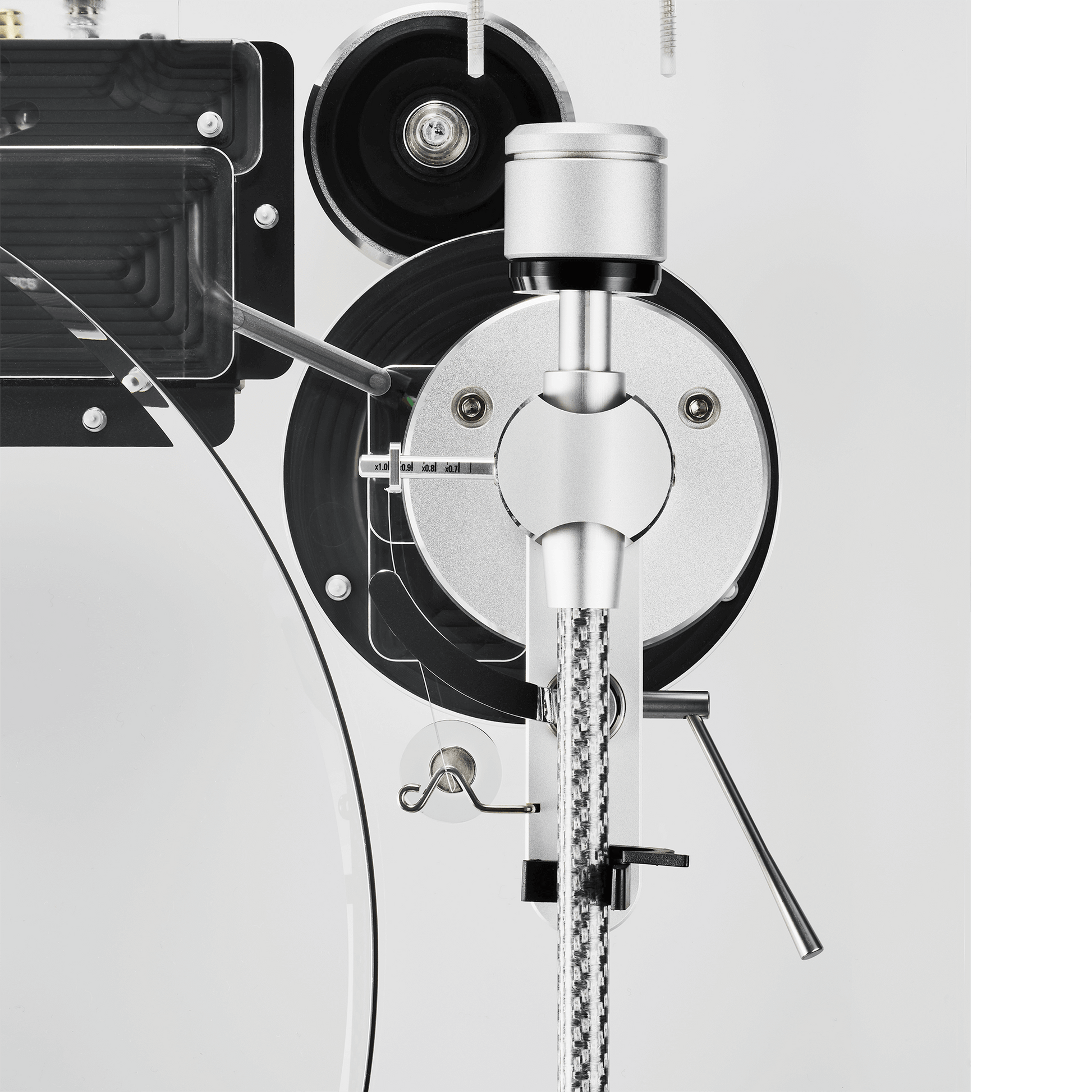 The cartridge comes mounted to an exclusive machined-aluminum headshell with azimuth adjustment, that attaches to the straight, carbon-fiber tonearm. Engineered specifically for this turntable, the new 8.8-inch tonearm also offers VTA adjustment. The lightweight, anti-resonant tonearm tracks smoothly and precisely, utilizing a highly accurate, finely adjustable string-type anti-skate mechanism to counteract any inward pull and maintain proper channel balance. In addition, the tonearm includes two counterweight options (110 g and 130 g) to allow you to use a wide variety of other cartridges, should you so choose.