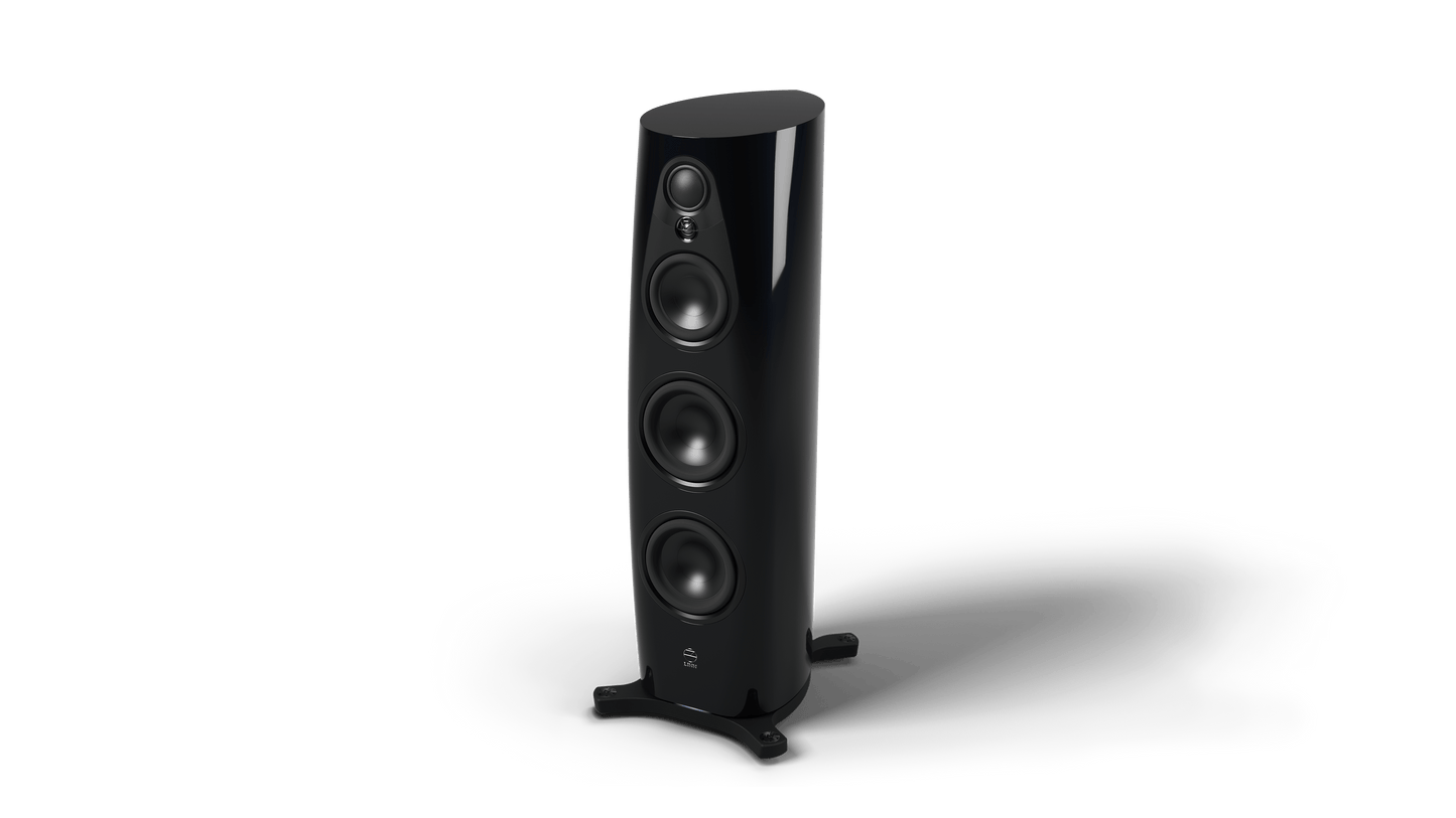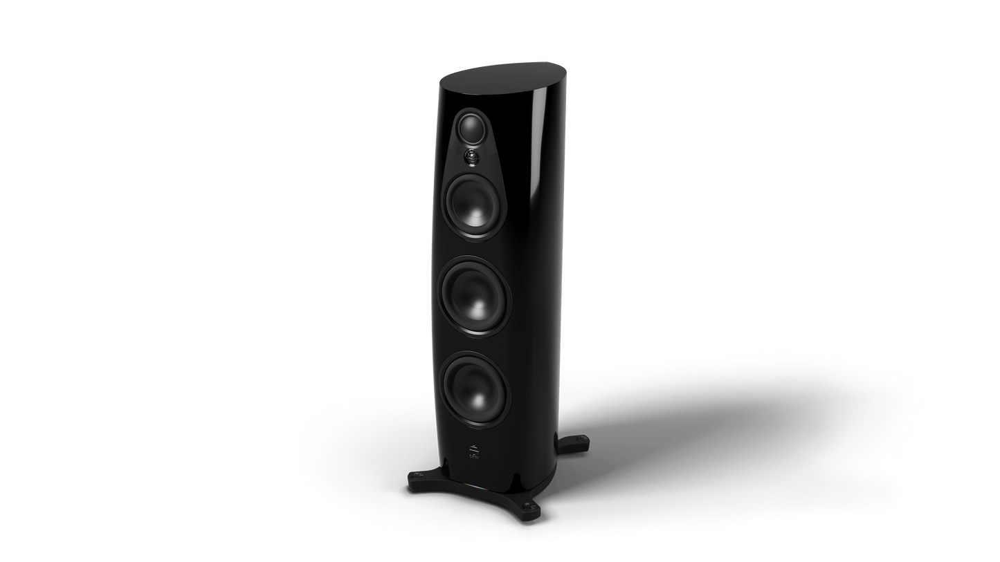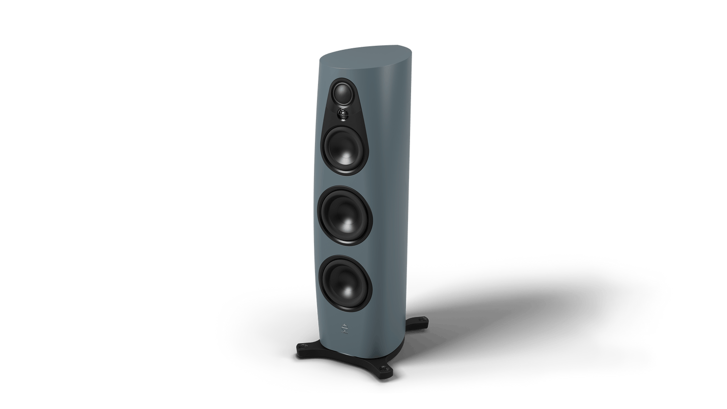 The curvaceous front of each speaker tapers from bottom to top, with shaped radii specifically matched to the requirements of each individual drive unit. The speakers’ constituent drive units are placed perfectly flush within this smooth baffle, so that they emanate sound, out and away from the speaker, entirely without obstruction. These elements result in a speaker which produces precisely the same tonality in every direction, reinforcing the sound-stage of the original recording.