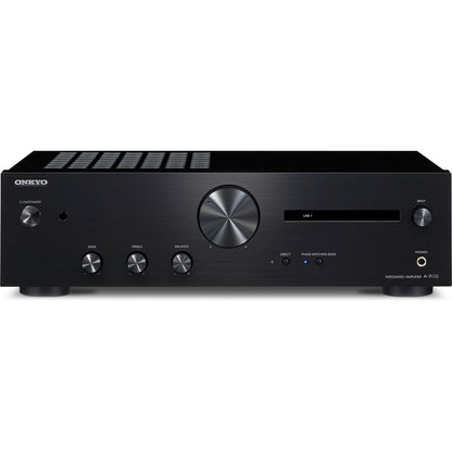 Onkyo builds on the success of its A-9010 pre-main amp with the new A-9110 Integrated Stereo Amplifier, a component that refines an original amp design that’s won an excellent critical and commercial reputation for dynamic, musical sound. Lively dynamics, deep bass, and layered detail emerge from warm and expressive tuning. WRAT delivers high-current power stability via large custom capacitors, while low-NFB amps capture the depth and spatiality of analog and hi-res recordings. Five RCA inputs including MM phono stage connect your sources while high-quality speaker-posts reveal Onkyo’s hi-fi heritage and careful attention to detail. The A-9110 invites you into each album, the hours passing comfortably in pure analog sound.