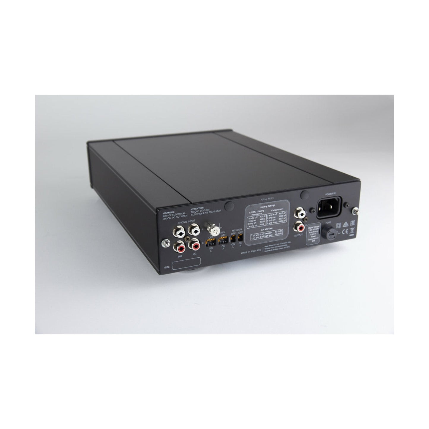 The MM input uses low noise, bipolar input transistors also configured as a compound pair. There are two separate power supplies for each channel and further sub-power supplies for each of the low noise input circuits. Nichicon FG electrolytic capacitors have been used in critical positions throughout the power supplies. Polypropylene capacitors have been used in the signal path and equalization networks. Discrete circuitry is used throughout the signal path ensuring full control of the circuit design.