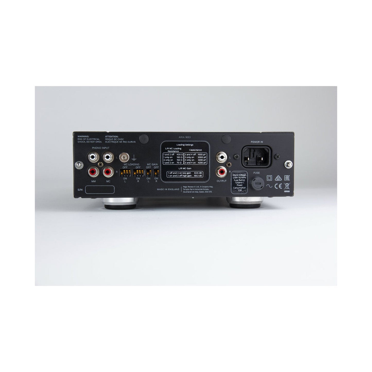 The Aria is an "all analogue amplifier" with no digital control circuitry. The fully aluminium case screens the internal circuit from any stray RFI signals. Our designers have avoided including any superfluous gadgets as they obstruct the signal path and degrade the sound quality. The Aria incorporates many innovative design ideas including a self-adjusting servo control to keep the MC input circuit at its optimum, compensating for any variations in ambient or operating temperature.
